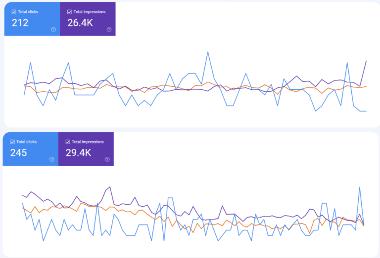 A couple of months after all the website updates were completed we saw a huge spike in website impressions and clicks. See the image below which compares website analytics from April to July: